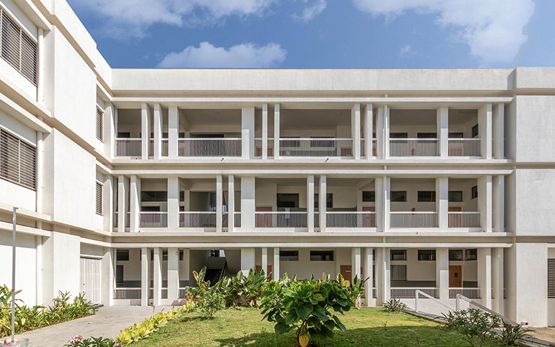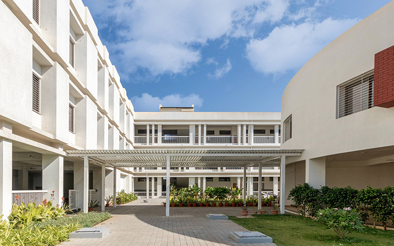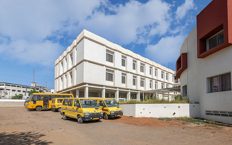 Features : 3 Floors RCC Structure with 3.6 mt Slab height, 26 Classrooms, Aesthetic design with Façade & landscaping.
