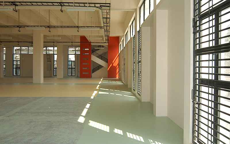 Features : Two floors R.C.C.Structure, Grid Type- 6.5 mt. ground floor slab & 5.0 mt. high first floor slab with 2.0 mt. load capacity of slab at first floor for CNC workshop.